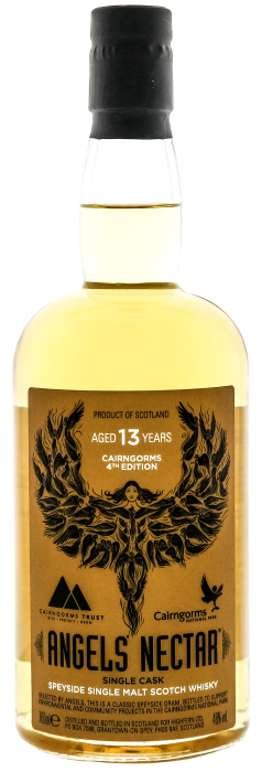 Angels Nectar 13YO Cairngorms 4th Edition Speyside Single Malt Scotch Whisky is het derde release in de Angels' Nectar Cairngorms Edition-serie, gemaakt met de Cairngorms Trust ter ondersteuning van het Cairngorms National Park.
