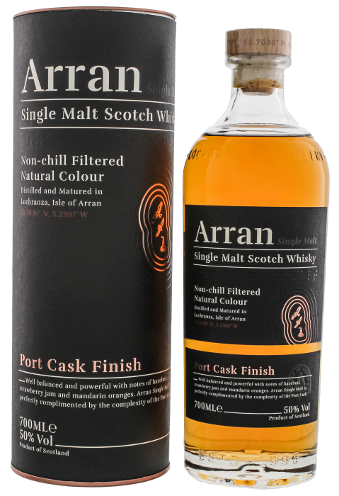 De Arran Port Cask Finish Single Malt Whisky behoort tot het hoofdassortiment van de Arran distilleerderij.