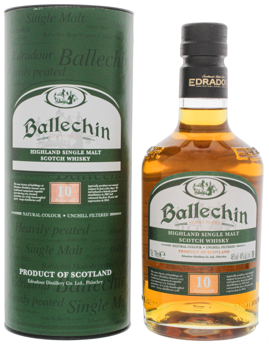 Ballechin 10YO Heavily Peated Non Chill Filtered Single Malt Whisky is een zwaar geturfde Schotse whisky uit Edradour.