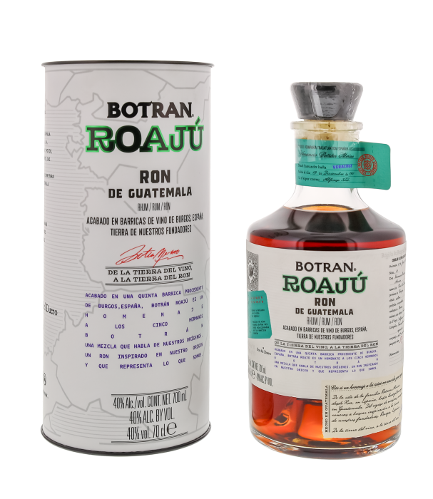 Botran Roaju Rum is een gerijpte melasse rum, een eerbetoon aan het verhaal van de gebroeders Botran, die de Spaanse regio Duero verlieten om zich in Guatemala te vestigen.