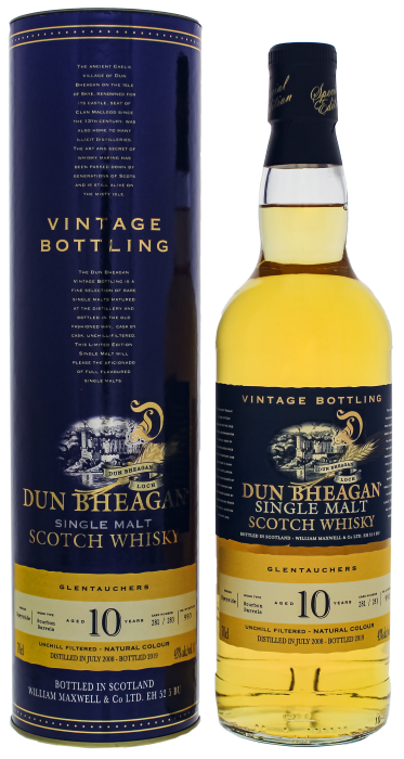Dun Bheagan Glentauchers 10YO 2008/2019 Bourbon Barrel Finish Single Malt is een oude singel malt, gebotteld door Ian Macleod als onderdeel van het Dun Bheagan assortiment.