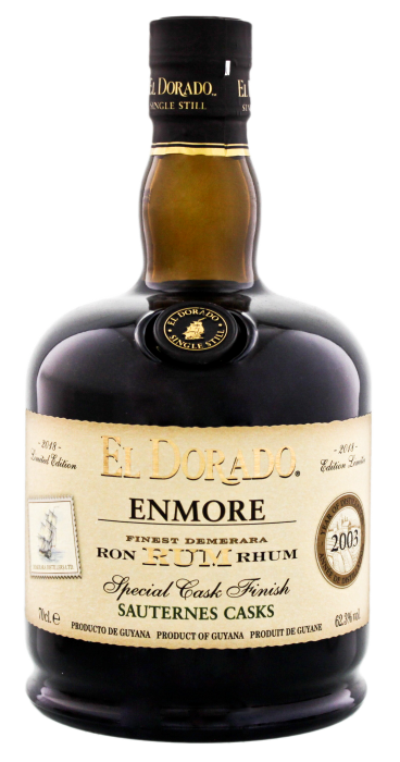 El Dorado Rum Enmore Sauternes Special Cask Finish 2003 Limited Edition 2018 is een limited edition van de Enmore distilleerderij in Guyana en heeft tien jaar gerijpt in voormalige bourbon casks en daarna nog eens vijf jaar in voormalige Franse Sauternes Bordeaux wijnvaten.