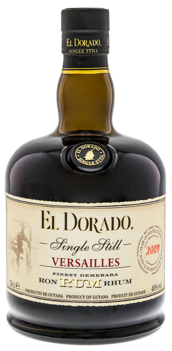 El Dorado Single Still Versailles 2009 afkomstig uit Guyana is een van de drie rums uit de Single Still-serie geproduceerd door El Dorado in de Versailles enkele houten pot still en biedt een aangenaam chocoladeachtig smaakprofiel.