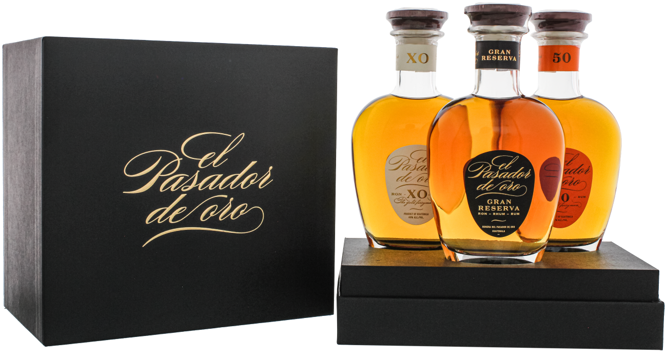 El Pasador de Oro Giftpack is een prachtige set van 3 verschillende soorten El Pasador de Oro rum.