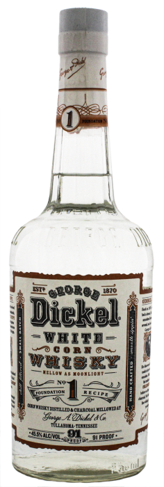 George Dickel No.1 Unaged White Corn is een handgemaakt whisky afkomstig van de George Dickel Distillery Co en wordt gebruikt als basis voor alle verdere bottelingen.