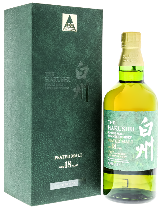 Hakushu 18YO Peated Single Malt Whisky 100th Anniversary is een gelimiteerde whisky uitgebracht door de Hakushu distilleerderij ter ere van het 100 jarig jubileum van het House of Suntory.