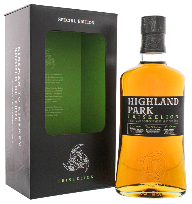 Highland Park Triskelion Special Edition Single Malt Scotch Whisky is een mix van 3 whiskycreaties, afkomstig van de distilleerder Gordon Motion en een samenwerking met veel ervaring tussen master Max McFarlane en Emeritus John Ramsay.