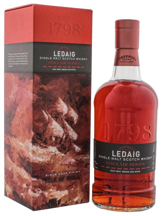 Ledaig Sinclair Series Rioja is een meesterlijk samengestelde single malt Scotch whisky die de zintuigen prikkelt met zijn unieke combinatie van geturfde rokerigheid en de invloed van voortreffelijke Rioja wijnvaten. Deze exclusieve uitgave uit de Sinclair Series belichaamt vakmanschap en verfijning, en biedt een ongeëvenaarde drinkervaring voor de liefhebbers van gedistingeerde whisky.