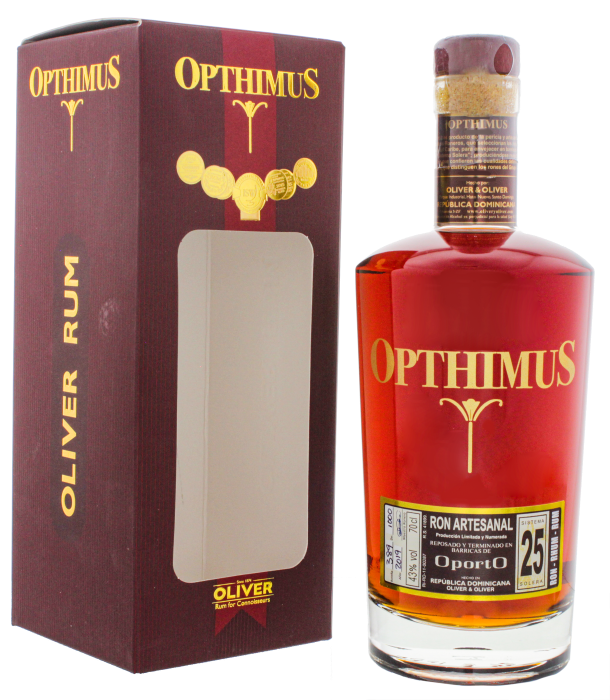 Opthimus 25YO Oporto rum is afkomstig uit de Dominicaanse Republiek en heeft minstens 25 jaar gerijpt in oude Bourbon vaten en vervolgens in zeer oude portwijn vaten, wat deze rum een zachtheid en een mooi afgeronde hint van zoetheid geeft.
