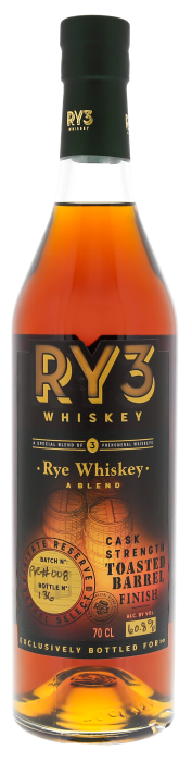 Ry3 Blended Rye Whiskey Cask Strength Toasted Barrel Finish is een gemengde Rogge whisky die 3 maanden gerijpt heeft in Madeira vaten.
