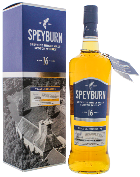 Speyburn 16YO Speyside Single Malt Scotch Whisky is uitgebracht voor de Travel Retail en heeft uitsluitend gerijpt in Amerikaanse eikenhouten bourbon vaten, waardoor er veel romige vanille-tonen zijn ontstaan.