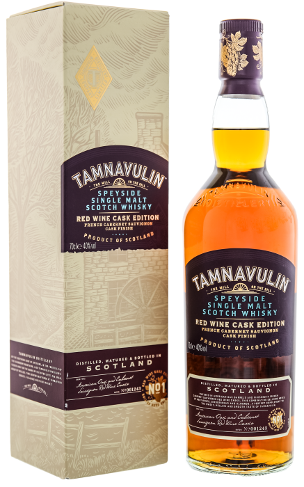 Tamnavulin Red Wine Cask Edition French Cabernet Sauvignon Cask Finish Single Malt Whisky maakt deel uit van het kernassortiment van de Speyside distilleerderij van Tamnavulin.