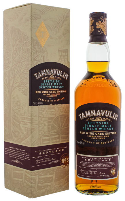 Single Malt whisky uit de Red Win Cask serie van Tamnavulin. Dit is de 3e editie uit deze serie. De whisky heeft gerijpt in Amerikaans eiken vaten, waarna er nog een finish heeft plaats gevonden in rode wijn vaten waarin eerder Duitse Pinot Noir gerijpt heeft. Tamnavulin whisky wordt gemaakt met de fijnste ingrediënten volgens eeuwenoude distillatie tradities en kennis en met vernieuwende technieken.