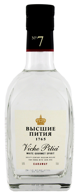 Viche Pitia No. 7 Caraway wordt op smaak gebracht met verschillende kruiden Premium Vodka, geproduceerd door Maison de la Wodka in Frankrijk volgens een oud Russisch recept uit de 18e eeuw en gedistilleerd in koperen ketels .