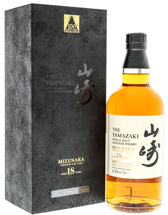Yamazaki Mizunara 18YO Single Malt Whisky 100th Anniversary is een een limited edition die werd uitgebracht ter gelegenheid van het 100-jarig jubileum van House of Suntory.